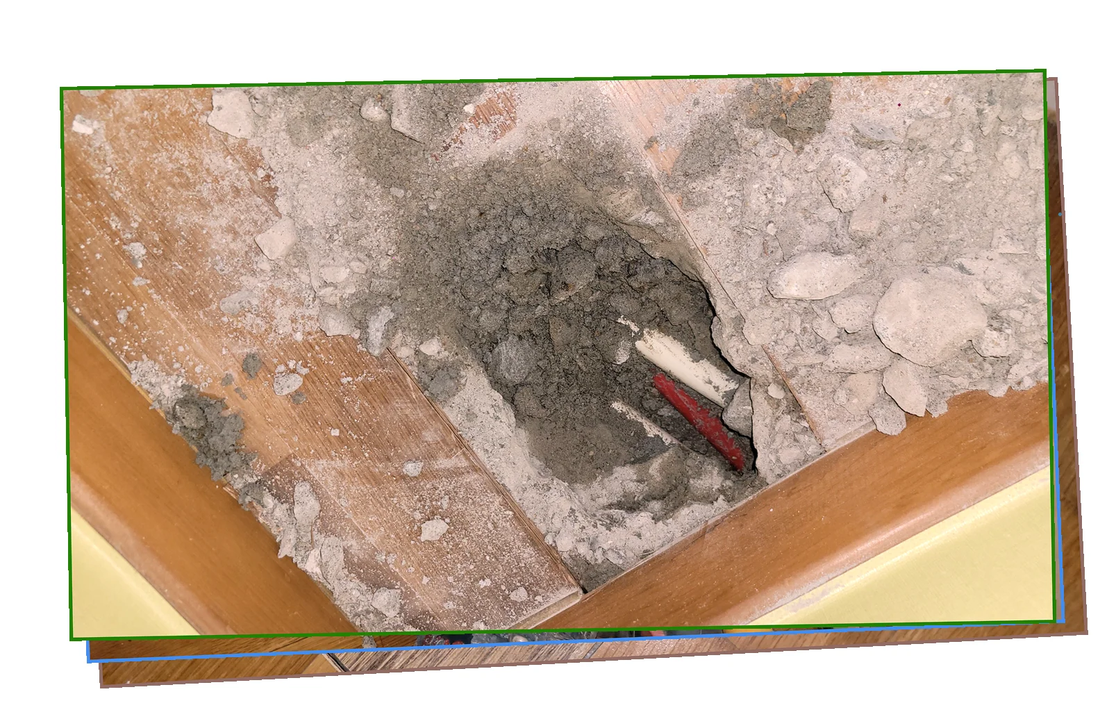 전 구역을 스캔한 결과 급탕관의 열팽창 균열 에서 지속적으로 물이 새고 있음을 확인했습니다.