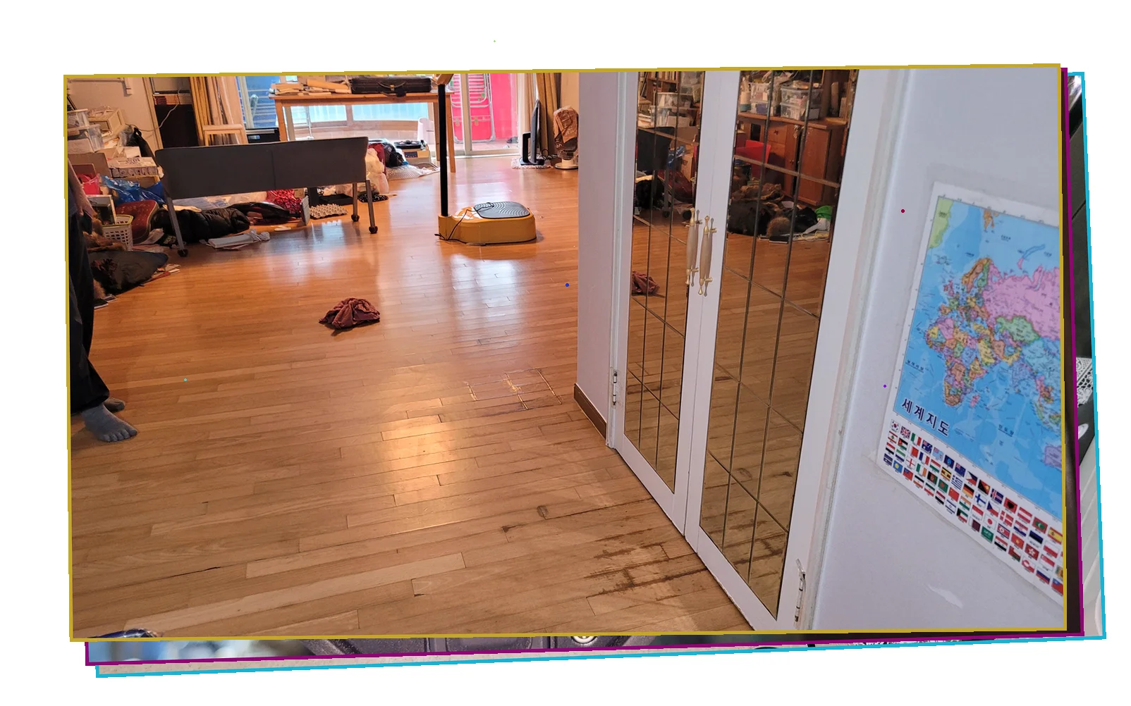 벽면과 바닥 전체에 습기가 퍼져있는 상황이었습니다.
